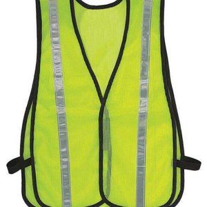 NWTs ML Kishigo neon yellow safety high visibility polyester mesh work vest. Made of polyester mesh for breath-ability & cotton trim.