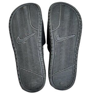 ❤️2/$18 Nike Benassi JDI Slip On Slides Sandals Black Rose Gold Slippers 8