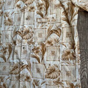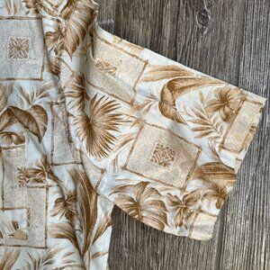 2/$18 SALE! Casual Life Button Up Shirt Mens XL Hawaiian Tan Palm Trees Vintage
