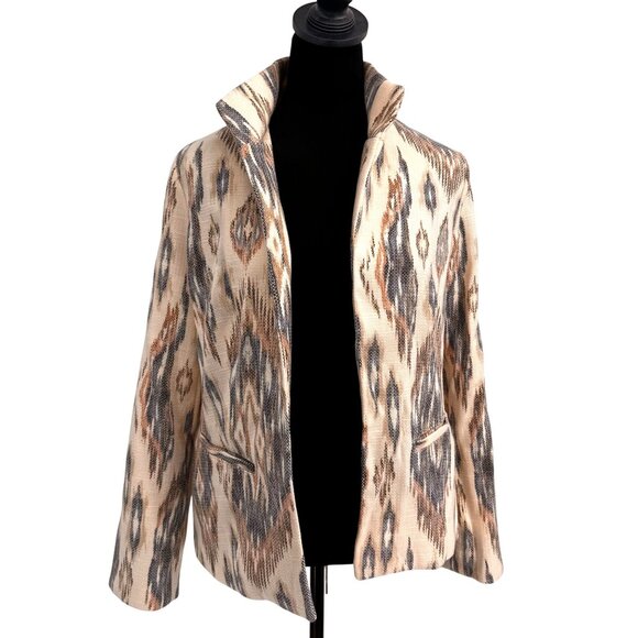 2/$18 SALE! Chicos Blazer Womens Jacket M Southwestern Geometric Cowgirl Ikat