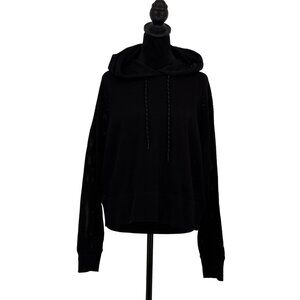 2/$18 SALE! DKNY Sport Mesh Hoodie Womens M Black Long Sleeve Banded Grunge