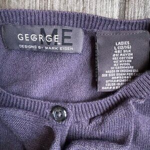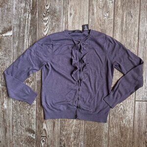 2/$18 SALE! George Silk Cardigan Sweater Womens L Purple Ruffle Fairy Ribbed