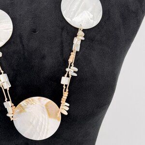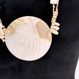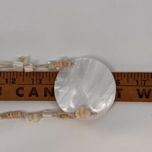 2/$18 SALE! Vtg Shell Necklace Womens Boho Mother Pearl Shell Bead Silver Toggle