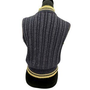 2/$18 Sale! Vtg Varsity Sweater Vest Striped Cable Knit Metallic L Mock Neck
