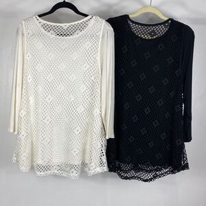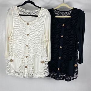 2/$18 White & Black Decorative Buttons Pullover Top, size M
