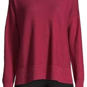 218.00 NWT EILEEN FISHER L HIBISCUS ORGANIC LINEN STRETCH TOP HI/LOW HEM