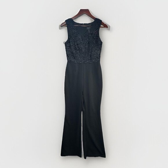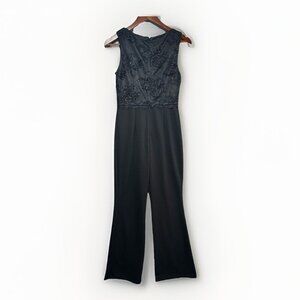 $219 Adrianna Papell Jumpsuit Size 2 Black Sleeveless Lace Sequins Mesh Evening