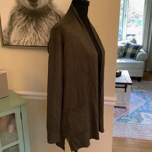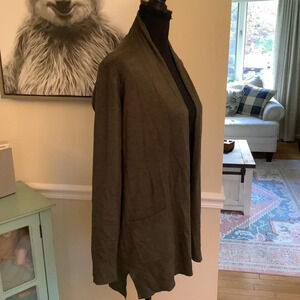 This is a beautiful open front cardigan that is super soft, long length and pockets. Pit to pit on small is 22” and 30” shoulder to hem. X small pit to pit is 20” pit to pit