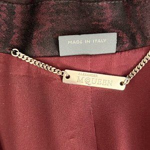 $2190 Alexander McQueen Burgundy Black Silk Blazer Wool Jacket size 44