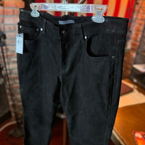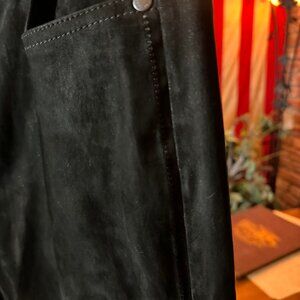 They have these beautiful, I guess now, trademark JV silver ball lining down the sides that give it a little metallic sparkle - and the pants feel like a suede-esque feel.