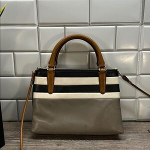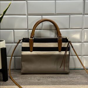 *2198 Coach Borough mini striped satchel bag