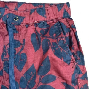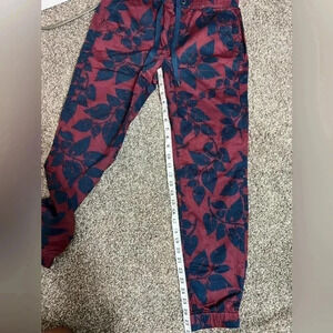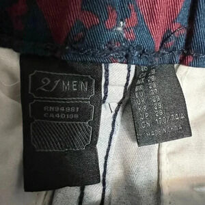 21 Men Jogger Leaf Boho Print Pants. Navy Blue and Burgundy Maroon Red color. Drawstring elastic stretch waist. Flat back and side pockets. Relax Fit
