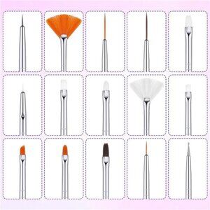 🧿nail design brushes pens set: there are a variety of nail design design brushes and pens for you, which cover most range of brushes you'll need, the nail design brushes sets are made of alloy, resin, acrylic and fiber wool, lightweight and easy to hold to use; Double-ended nail dotting pen features a large ball and a small ball for various size dotting