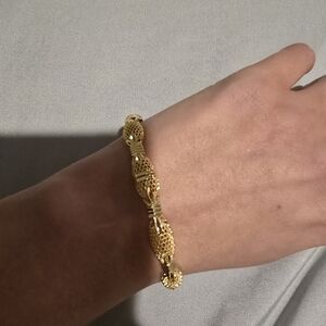 This stunning gold bangle adds a touch of elegance to any outfit. Perfect for any occasion.