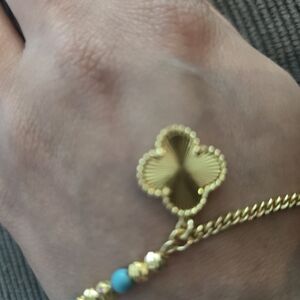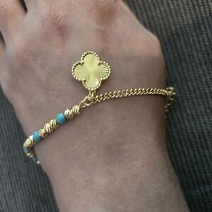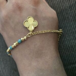 Elegant 21kgp Dubai Jewelry gold bracelet with turquoise accents, perfect for adding a touch of sophistication to any outfit.