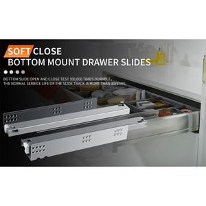 22" Bottom Mount Soft Close Drawer Slides Full Extension 80lb Load 22 inch