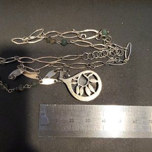 22 Inch 925 Sterling Silver Unique Odd Floral Rustic Pendant Necklace