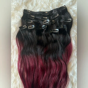 22 Inch Clip in Hair Extensions Ombre black to Burgundy