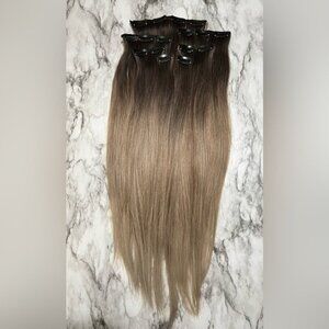 22 Inch Ombre Clip in Hair Extensions Brown to Light Blonde in Straight