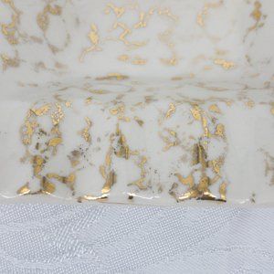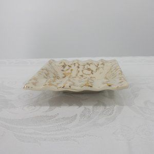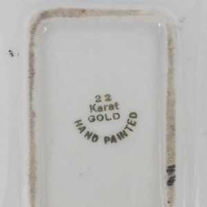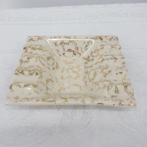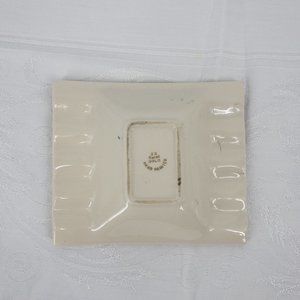 22 KT Gold White Ashtray Hand Painted 5" X 4" 10 Cigarette Slots Vintage MCM
