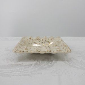 22 KT Gold White Ashtray Hand Painted 5" X 4" 10 Cigarette Slots