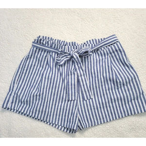 [22] Love Tree Women's Blue White Stripped Paperbag Shorts- Size M