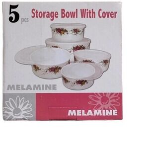 Melamine Bowl 5 Pcs Set With Lids. Condition is New. Melamine Brand New Set of 5 Storage Bowls With lid is perfect for storing small amounts of leftover food.Bowls measure is 4”, 5” 6” 6.5”and 7.5”.Light weight and good quality,BPA Free,Dishwasher safe