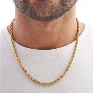 Brand NEW 18K Gold Men's Braided Rope Chain Necklace