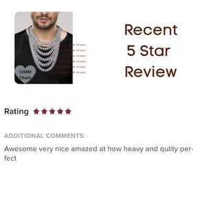 22” Men’s Solid 925 Sterling Silver Cuban Chain