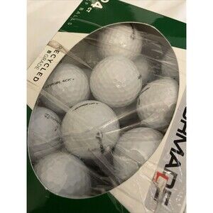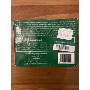 Open box of 22 recycled, white, grade B, Taylormade golf balls by Challenge Golf. Original box had 24 but it looks like two are missing and the box has been taped shut. In good pre-owned condition.