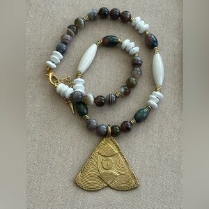 22 inch Botswana Agate and Jade bead necklace NWOT