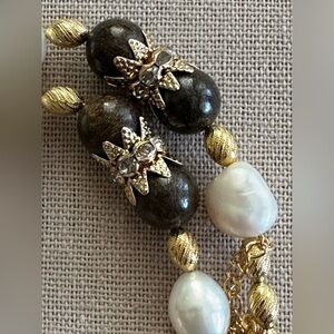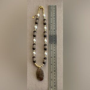22 inch Bronzite gemstone and Freshwater Pearl bead necklace NWOT
