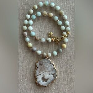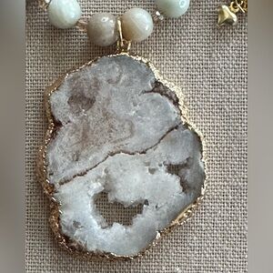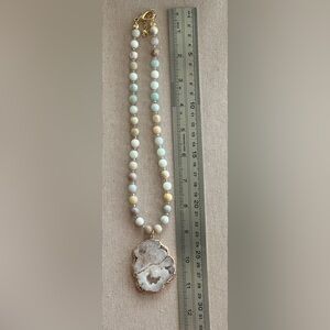 Natural Geode Agate pendant Morganite Gemstone beads Gold Tone Lobster Clasp Crystal bead spacers