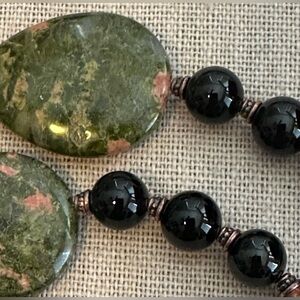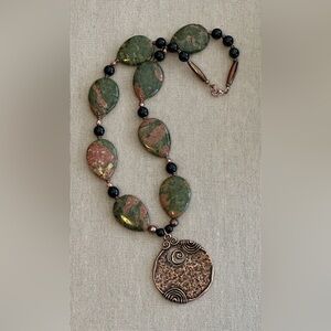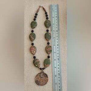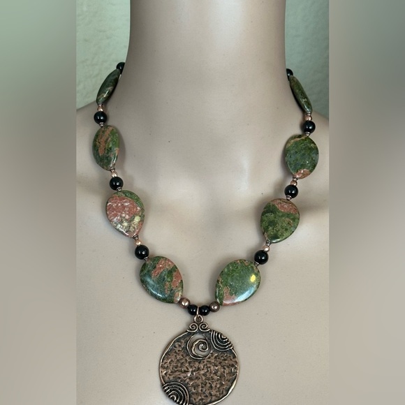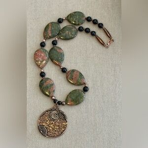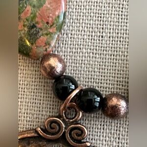 Unakite gemstone beads Black Onyx Gemstone beads Antique Copper plated pendant Real Copper and Copper plated beads