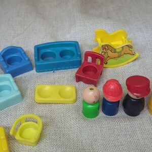 22 pc Vintage Fisher-Price By Hong Kong Little People Playset Figures Furniture