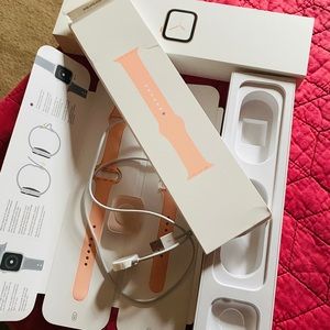 It has its box, its charger is in perfect condition, it works very well, neither broken, nor scratched, its clean strap in perfect condition, everything ...