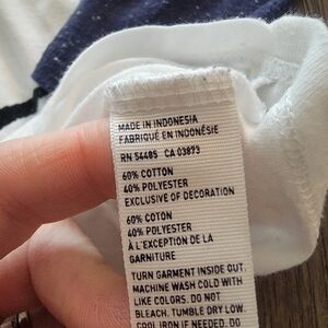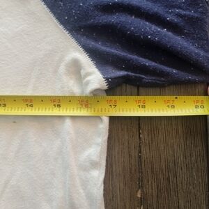 white with navy blue 3/4 length sleeves