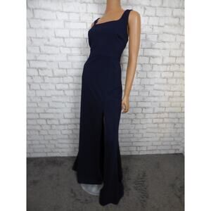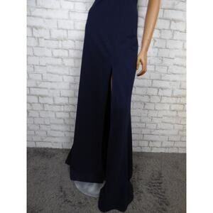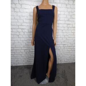 $220 BHLDN Ashlynn Square Neck Side Slit Crepe Gown in Navy 24W NEW B996