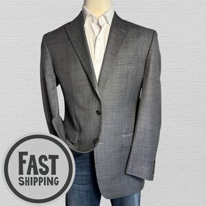 $ 220 CHAPS Mens Blazer 42L WOOL Gray Sport Coat Two Button Suit Jacket