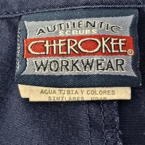 Cherokee scrub top, navy blue scrubs, medical uniform top, women’s scrub shirt, size M scrubs, healthcare apparel, nurse scrub top, workwear scrub top, comfortable medical wear, durable scrub shirt, short sleeve scrubs