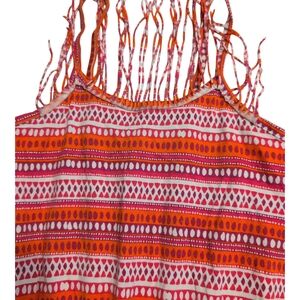 Pink & orange Aztec print, spaghetti strap with fridge on the chest