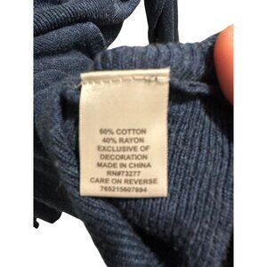 Stay fashionable and warm with our Dark Turquoise Long Sleeve Sweater. Features a chic bow design down the back, perfect for your business casual look. Made from cotton and rayon, size L.