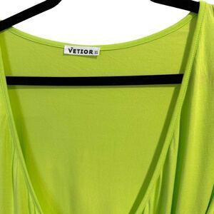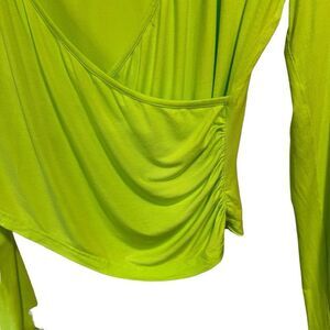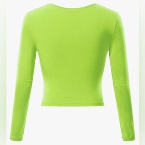 2/$20 Deep V Neck Long Sleeve Unique Slim Fit Cross Wrap Neon Bright Crop Top