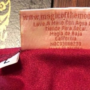 This velveteen feeling outfit was custom made in Cabo San Lucas at Magic of the Moon. Pepita (the owner) makes beautiful cloths and this deep red matching outfit has bell bottom legs with elastic waist band and tank style top. Very soft and comfortable and can be worn underneath a tunic top or dress to accent your outfit or just by it self. *NEVER WORN* NEW