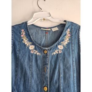 220 Hickory Blue Denim w/Floral Embroidered Button Front Cotton Maxi Dress Medium, 100% Cotton