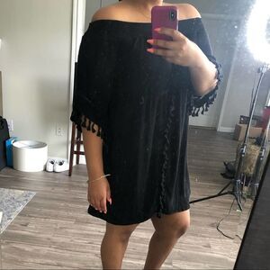2/$20 Love, Fire Black Off Shoulder Tassel Fringe Boho Dress