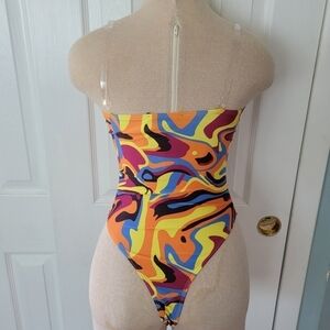 2/$20 NWT Boohoo Marble Clear Straps Scooped Swimsuit 2