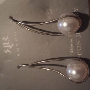 Elegant Sterling Silver drop earrings with a pearl accent. Perfect for any occasion.