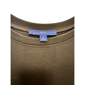Embrace a chic look with the Apt 9 Navy Blue Rounded Collar Long Sleeve Blouse with Striped Hem. Crafted from a polyester, rayon, and spandex blend, this XL-sized women's blouse exudes sophistication.