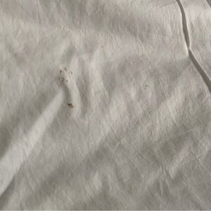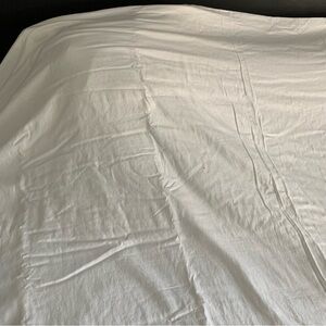 Great condition. Super soft. Quality made. A few stains. Although they do not appear to be there, I have to point it out. These are light cream colored, so any stain small will show. Stains are circled in red. The duvet has been laid on a king bed to show location. One of the stains is in the inside facing the bed. Comes with two pillow cases and king duvet. There are a couple stains on the pillow cases. Button closure. Used sparingly only in guest room. No holes.